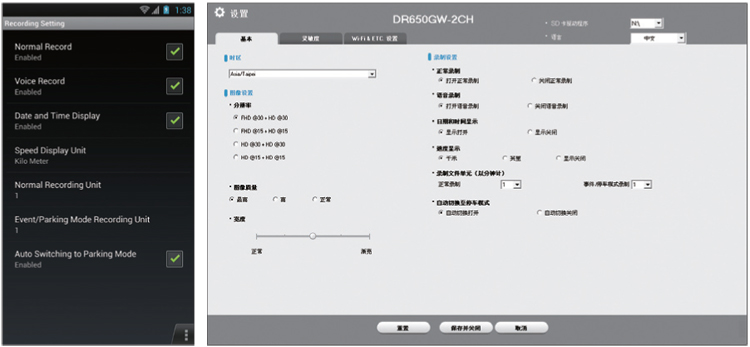 在配備的部分,DR650GW-2CH具備GPS、G-Sensor以及WI-FI等功能,雙鏡頭都採用SONY高感度CMOS感光元件,前後鏡頭分別具備240萬畫素與100萬畫素。至於解析度表現,前鏡頭最高可達到1920X1080@30fps的水準,後鏡頭則是最高1280X720@30fps,雖然後鏡頭的解析度只有HD的等級,但是以一個行車記錄器的角度來說,這樣的配置也已經足夠使用了。