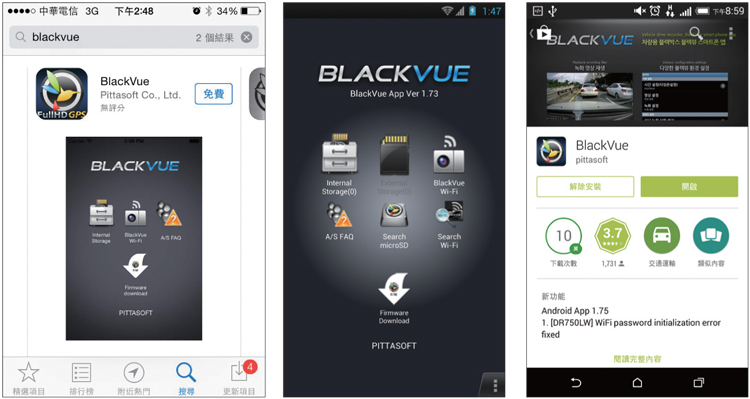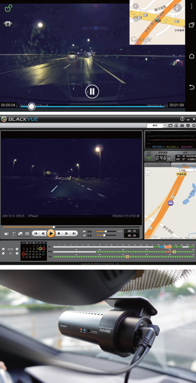 在筆者與台灣代理商維迪歐科技取得測試機器時,他們特別提到要筆者試用BLACKVUE自行開發設計的APP。其實在WI-FI版的DR500GW的口紅姬推出時,這套BLACKVUE筆者就小有接觸,而在雙鏡頭口紅姬推出的同時,這套APP也換上新的版本,雖然它仍然沒有中文化的設定,但是基本的操作功能還算簡單。