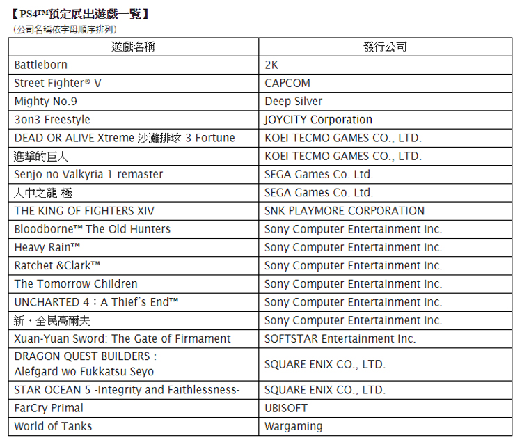 PS4™預定展出遊戲一覧![]()