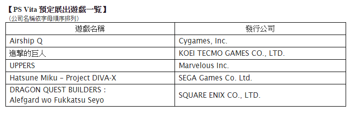 PS Vita 預定展出遊戲一覧![]()