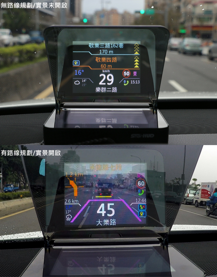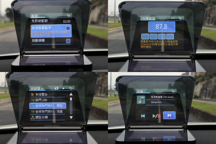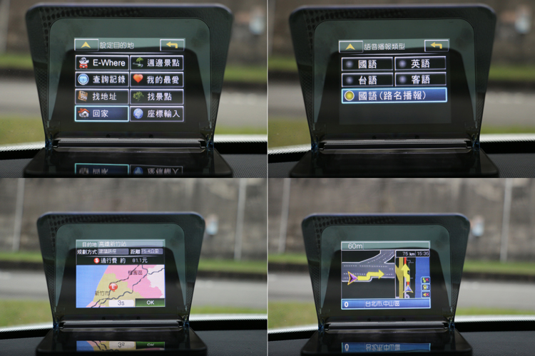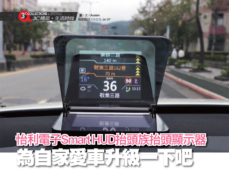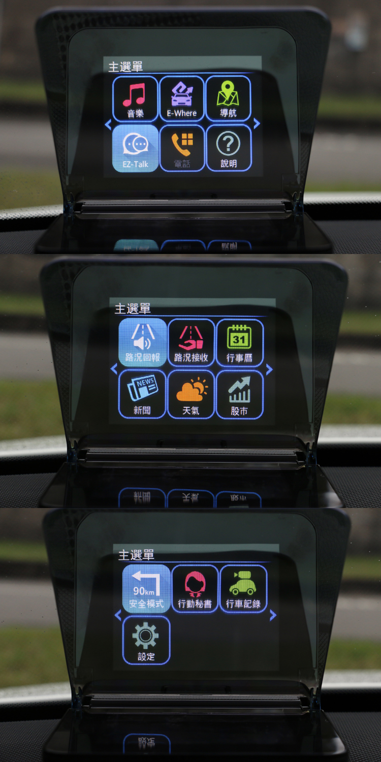 安裝簡易,功能多元Smart HUD整組配備的裝載方式相當簡單,首先將行車器錄器貼在適當的位置並將影像傳輸線接上HUD主機,接著將二合一的控制線與USB電源線分別接上HUD主機與12V點菸器即可。安裝過程最複雜的是藏線的問題,如果想要讓線路走得漂亮,自己又擔心拆壞車內的裝備,建議消費者花個八百元到原廠指定的店家做精緻的安裝處理,省時又省力。 ![]() ▲Smart HUD抬頭族抬頭顯示器所有功能的操作都是透過這顆旋鈕控制,購買後需要先熟悉它的操作動作。Smart HUD的功能非常多元,可透過USB旋鈕進行操作,進入主選單後即可看到多達16個選項,不僅如此,怡利電子還為Smart HUD開發了E-Where、HUD Remote、EZ-Talk、EZ-Account等四個手機APP,並且將它們透過eLeadrive APP進行整合,消費者只需先透過eLeadrive 安裝所有APP後,再將手機與主機藍芽配對即可進行所有功能的操作。而談到手機藍牙連線的功能,Smart HUD除了支援基本的藍牙電話、藍牙音樂撥放之外,透過手機藍牙網路連線後還可啟動網路電台、新聞、路況、天氣、股市等選單內的功能,使用的範圍相當廣泛,礙於版面大小,筆者就針對三個實用的功能進行試用分享。 ![]() ▲Smart HUD內建的功能非常多,進入主畫面即可看到多達16個選項,部分功能需透過藍牙連接手機網路方可使用。![]() ▲9怡利電子針對Smart HUD開發多項APP供消費者使用,並透過eLeadrive將所有APP整合。實用功能 (一):E-Where搭配導航超方便 導航功能是Smart HUD中一個非常實用的功能,圖資的部分使用PAPAGO的導航內容,這套導航的準確度表現向來都不錯,加上原廠的更新也會為圖資作升級,所以不用太擔心導航版本過舊的問題。此外,怡利電子也針對導航的部分開發出E-Where的APP,可以透過手機搜尋目的地,並且透過這套APP直接傳送給Smart HUD主機,讓使用者可以快速的設定導航的內容,不僅如此,E-Where還可以直接儲存我的最愛,讓之後的使用更為方便快速,筆者試用下來最實用的功能。 ![]() ▲E-Where是一套相當便利的APP,使用者透過手機設定好目的地後,即可直接傳送到Smart HUD主機進行導航。![]() ▲導航使用PAPAGO圖資與介面,操作起來相當就手,配合E-Where APP 更能快速設定導航目的地。實用功能 (二):音樂功能 在音樂功能方面,Smart HUD支援藍牙音樂、網路電台以及MicroSD記憶卡的音樂撥放,音源除了可從主機本身輸出之外,使用者亦可透過內建的FM傳輸器將音源傳至車用音響,雖然多少會受到雜訊的干擾,但是在音質的表現還算不錯,所以對於沒有支援藍牙功能的音響主機來說是相當實用的功能,不過有一點要特別注意,經由FM傳輸器所傳輸出來的音量會比一般廣播電台的音量小,過程中如果有要切換頻道要記得先調整音量,以免被喇叭的聲音嚇到。 ![]() ▲即使自家車上的音響主機沒有支援藍牙或是記憶卡音樂撥放,透過內建的FM傳輸器就可以將音源輸出至車用主機,相當方便。實用功能(三):安全模式搭配行車紀錄器功能更完整 安全模式是Smart HUD中一項重要的功能,該模式可分為無路線規劃與有路線規劃兩種畫面,在無路線規劃時,螢幕畫面會顯示當前行駛的道路、下一個路口以及下下個路口的資訊與距離,並同時會將車速、道路速限、氣溫等資訊一併整合在畫面中;在有路線規劃的狀況下,畫面會叫無路線規劃模式簡單,但是經過要轉彎的路口時,系統會自動切換到導航的畫面。若購買時有額外搭配行車紀錄器,則會增加車距警示與車道偏移警示兩項功能,並可開啟行車紀錄器的實際畫面作為安全模式背景,然而這項功能透過Smart HUD分析行車紀錄器畫面而得,在精準度上多少會有誤差,不過仍可以當作在高速公路上行駛時的參考依據。 ![]() ▲在有無路線規劃的情況下,安全模式會有不同的顯示方式,而開啟實景顯示後,則會多出行車紀錄器拍的實景畫面。![]() ▲車距警示調整選項,分為100%、70%、40%、off,設定完成後主機會透過行車紀錄器進行距離的分析並給予警示。![]() ▲搭配行車紀錄器並將背景顯示實景的功能打開,即可在安全模式中開到行車畫面,實際試用其實有點影響駕駛。