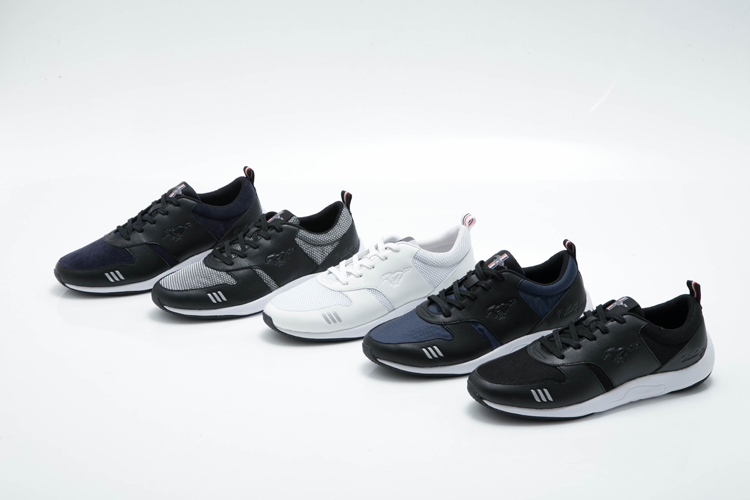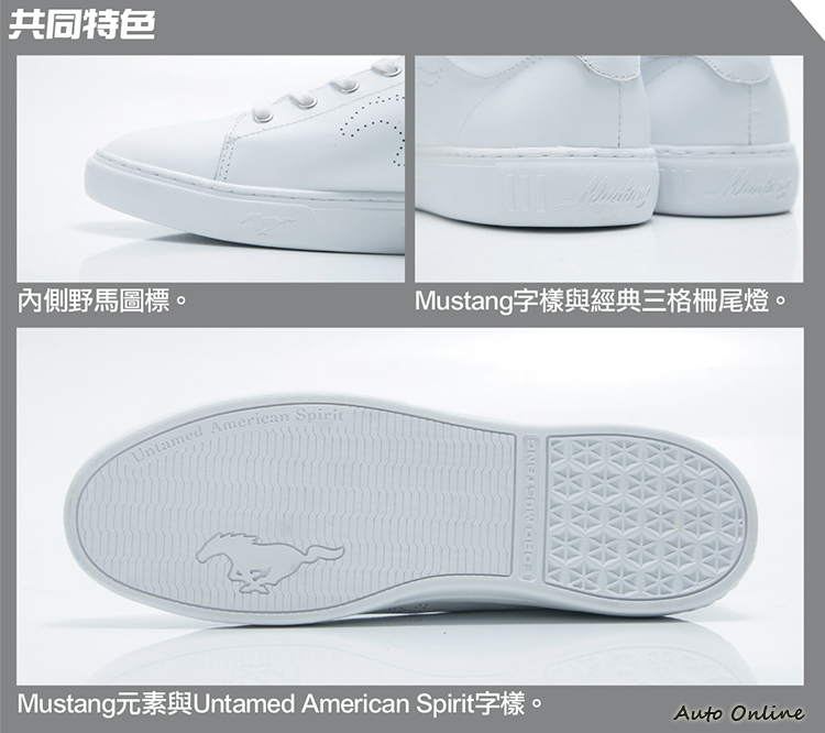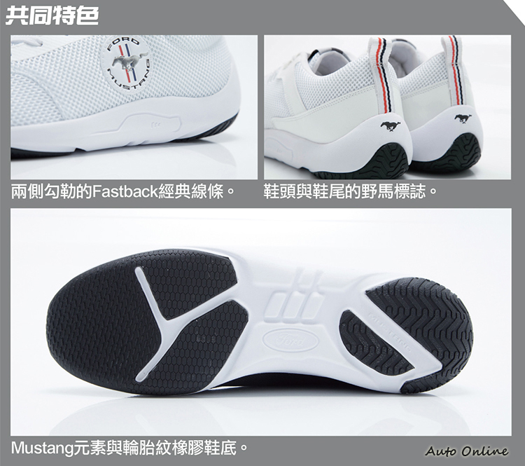 鞋面依照不同款式,將透氣網布、皮革與TPU材質相互結合,並以復古野馬圓標與新世代頭燈直柵線條區分不同的系列,風格相當多元。