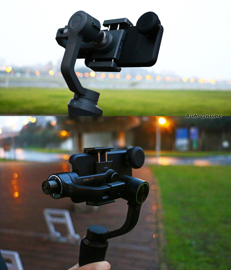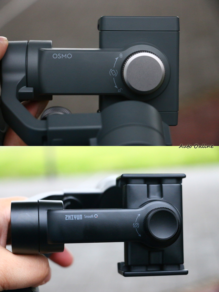 外型大同小異,色彩Z1 Smooth Q較多選擇![]() 首先從外觀講起,DJI的OSMO Mobile 2與智雲的Z1 Smooth Q兩者的基本造型相當接近,不僅機身大小近乎相同,兩款穩定器都具備手機架轉向功能與1/4通用螺孔底座,甚至不約而同的採用內建充電電池配置。 ![]() ▲兩款穩定器底座都支援1/4螺孔,使用者可以額外安裝腳架。![]() ▲兩款穩定器接採用伸縮拉桿進行平衡。![]() ▲兩款穩定器的夾具都可以轉成垂直拍攝。![]() ▲夾具大小皆試用六吋以下手機。![]() ▲Z1 Smooth Q的按鍵配置在同一面,OSMO Mobile 2 則是將變焦鍵安排在握把左邊。![]() ▲相較於OSMO Mobile 2的單一鐵灰配色,Z1 Smooth Q 共有四種顏色供消費者挑選。