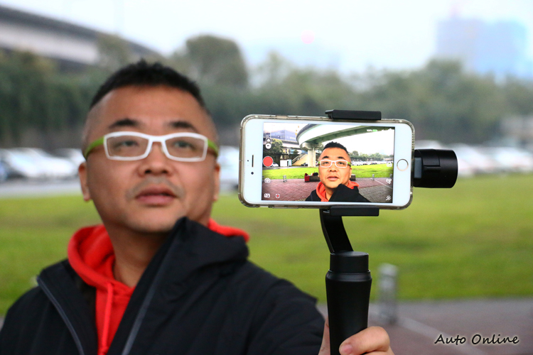 左右旋轉範圍有差異,Z1 Smooth Q可以360度拍攝![]() ▲Z1 Smooth Q可以360度旋轉,按壓三下模式按鍵可以直接反轉拍攝視角。除了基本的穩定功能之外,水平、俯仰與左右旋轉也是穩定器必備的功能,兩款穩定器水平角度調整範圍都同樣是-90度到70度,俯仰角度則是達到±155度。不過在左右旋轉上,因為OSMO Mobile 2中間有一個卡榫,所以最多只能達到左右各170度的旋轉範圍;至於Z1 Smooth Q則是因為沒有死點的設計,因此可以進行360度旋轉,不僅沒有左右拍攝角度的限制,智雲更因此為它加入一鍵選轉的功能,讓使用者能在拍攝時快速的將鏡頭位置反轉,提供更多元的拍攝角度。