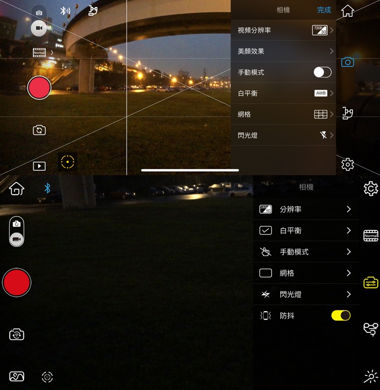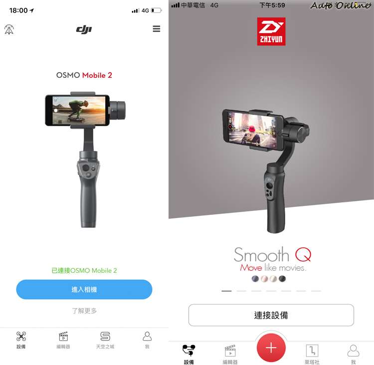 專用APP比拚,OSMO Mobile 2軟體流暢度較佳![]() ▲OSMO Mobile 2 使用「DJI GO」APP,Z1 Smooth Q則是「ZY Play」兩者皆透過藍芽將手機與穩定器連線。這次比較的OSMO Mobile 2與Z1 Smooth Q都擁有各自的APP應用軟體,OSMO Mobile 2使用的軟體名為「DJI GO」;Z1 Smooth Q則是「ZY Play」,兩款應用軟體均可以在Android與iOS平台上使用。軟體介面設計部分也是極為相似,使用者透過藍芽將手機與穩定器連接後,即可透過穩定器上的按鍵操作軟體內建的相機功能。實際觀察內建的功能後,筆者認為OSMO Mobile 2的成熟度比較高,不僅內建的濾鏡效果較為多元,自動跟隨的準確度與變焦功能的流暢表現更是明顯優於Z1 Smooth Q。順帶一提,雖然兩款APP都具備Facebook直播串流的連接功能,但是彼此之間都各自有瑕疵存在,「DJI GO」是在直播時會出現聲音畫面不同步的現象;「ZY Play」則是無法直接透過APP的一鍵直播與Facebook平台連接,這部分是我認為是它們未來在更新時需要特別加強的地方。 ![]() ▲APP介面大致相同,不過在功能上「DJI GO」多了美肌效果。