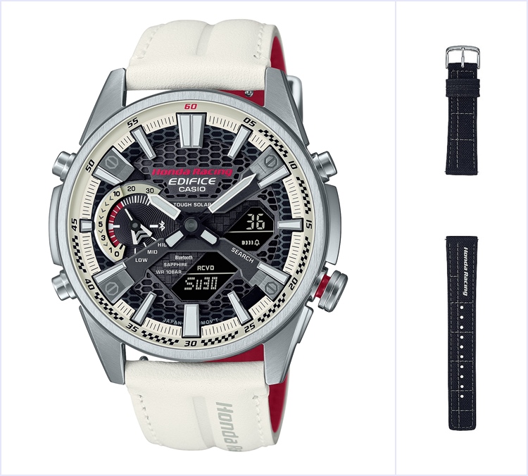 卡西歐計算機株式會社宣佈推出ECB-S100HR本田賽車冠軍白錶款,這是與Honda Racing合作的最新EDIFICE系列高性能金屬計時腕錶,設計靈感基於「速度與智慧」這一品牌理念。