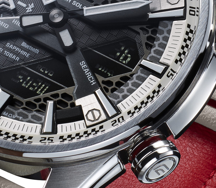 ECB-S100HR系列腕錶是以Honda RA271中獲得設計靈感,向Honda的傑出歷史和在F1中的成就致敬。在1964年問世的RA271是日本第一輛F1賽車,車身為白色,上面印有紅色的旭日。這種車身顏色被稱為「冠軍白」,成為了本田賽車精神的象徵。ECB-S100HR的錶盤外圈採用了正宗的冠軍白漆面裝飾,內嵌式錶盤和按鈕則以紅色為點綴。玻璃邊緣的圖案使人聯想到方格旗,這是向本田多次勝利的致敬。真皮錶帶採用雙色配色方案,外側為白色,底側為紅色。