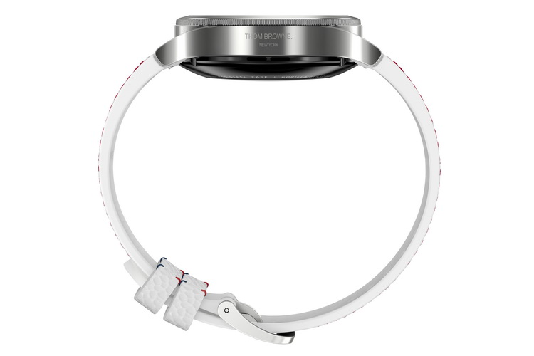 「織布錶帶」大膽展現Thom Browne經典設計,搶眼外型一覽無遺;「FKM錶帶」使用舒適的氟橡膠材質,不論運動、休閒皆能提供絕佳的配戴感受。從產品外觀到使用介面,甚至連充電線均融入Thom Browne品牌的經典特色,讓消費者從產品開箱乃至日常使用,皆能沉浸於其雋永之美。