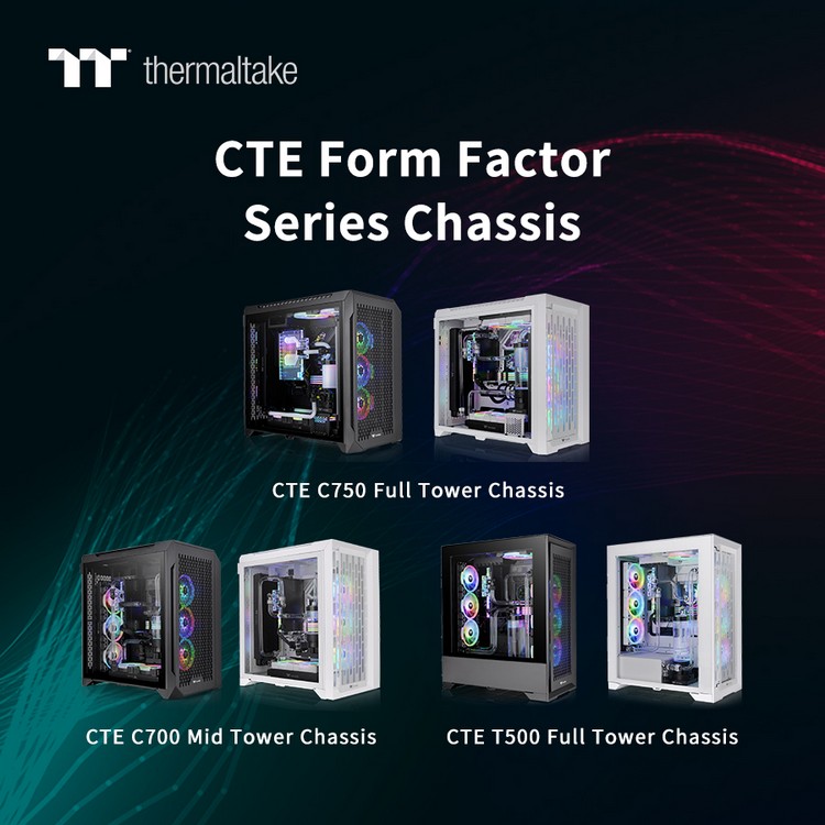 曜越五月底宣布推出CTE Form Factor機殼系列,以創新設計CTE (Centralized Thermal Efficiency)─高效能極聚散熱,為重要零件提供最佳的散熱效能。其中機型包括:CTE C750 Air、CTE C750 TG ARGB、CTE C700 Air、CTE C700 TG ARGB、CTE T500 Air和CTE T500 TG ARGB,每款皆有黑色與雪白版兩種顏色可供選擇。