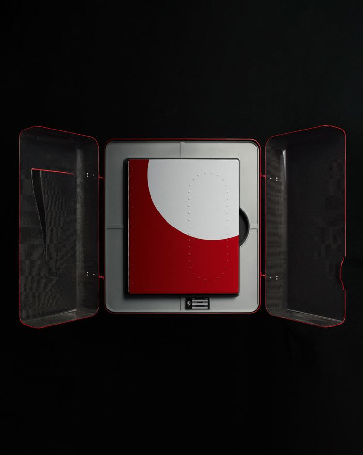 書盒由碳纖維材料製成,該材料也廣泛應用於近些年問世的Ferrari車型,其中包括Ferrari F40 LM以及Ferrari 499P Hypercar。值得一提的是,書盒還從享負盛名的Ferrari F40車型汲取創意靈感,借鑒了其NACA通道設計。此外,書盒飾以極具辨識度的Rosso Corsa漆面,並且採用與Ferrari賽車結構部件相同的工藝技術。書盒的內襯則選用Alcantara面料裝飾,一如Ferrari 499P賽車的內飾。