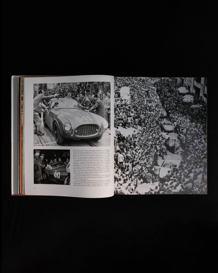 精心撰寫的文字以及前所未見的珍貴圖片,讓典藏本生動再現昔日精彩激昂的耐力賽盛況,非常值得細細品味,而其獨一無二的外觀設計同樣令人讚歎不已,為讀者帶來引人入勝的絕佳觸感和美感,封面及封底均採用了鋁材鉚接工藝,向歷史上極具代表性的躍馬車型致敬,其中包括曾在Mille Miglia一千英里耐力賽中奪冠的Ferrari 166 MM以及曾問鼎Le Mans 24小時耐力賽的Ferrari 275P。書脊則由賽車部門當前使用的3D列印機製作而成,並採用了與Ferrari 499P引擎底座相同的工藝。此外,新書的內部結構採用從實心鋁塊加工而成的鋁材,這與馬拉內羅出品的躍馬車型中多個機械部件的複雜製造工藝如出一轍。