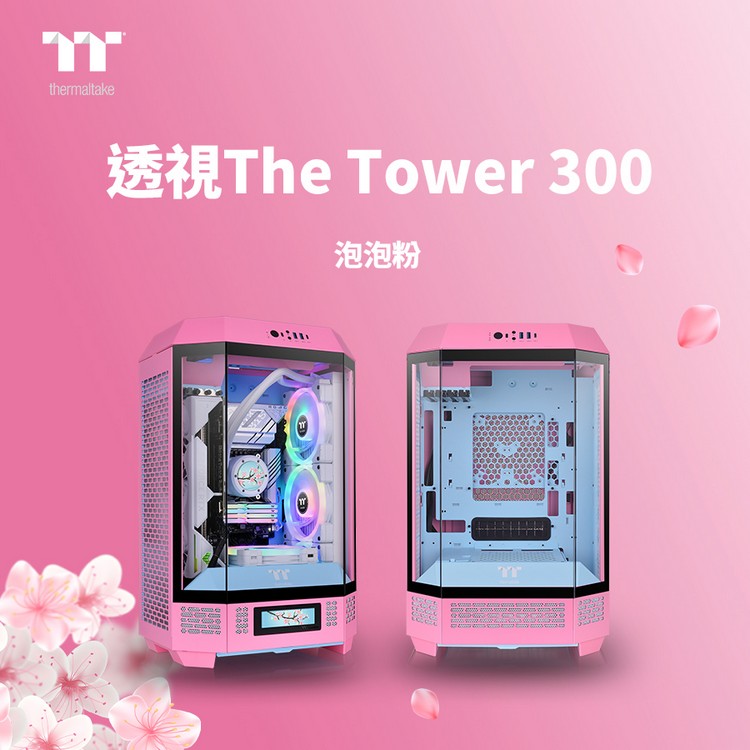 曜越推出透視The Tower 300小型機殼泡泡粉,「粉」搭櫻花季! 透視The Tower 300系列小型機殼主打八角柱外型機身,靈活支援直立及橫躺機殼擺放,是CES 2024美國消費性電子展上的一大亮點產品。為應景櫻花季,透視The Tower 300小型機殼特別推出泡泡粉全新色,讓該系列機殼現共有八種款色可供選擇:黑色、雪白版、松石綠、競速綠、抹茶綠、蜂芒黃、繡球花藍及泡泡粉,滿足玩家們的多色美學!