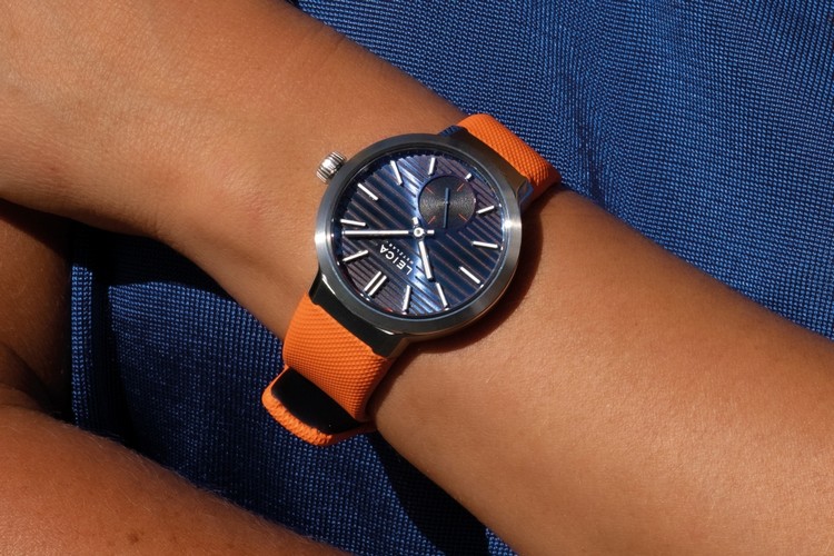 每條錶帶都由徠卡手工工坊精心製作,融合現代科技與傳統工藝。錶帶甄選兩款獨特材質打造:第一款為富有彈性、經久耐用的高科技織物,具有高強度和長使用壽命,其米色布料特有的立體紋路為手腕間增添雅緻格調;第二款為優質橡膠,具有出色的耐用性和舒適性,其明亮橙色色調和獨特的搭配反向“Clou de Paris(巴黎釘紋)”圖案,為想彰顯大膽風格的人理想的選擇。