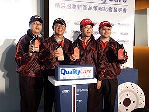 此外,新上市的"閃靈通風碟"則是針對著重『運動休閒生活』車主所適用的鑽孔式煞車通風碟,此款以專屬模具開發之煞車碟,有著非對稱性鑽孔與金色烤漆,在外觀上則直接反應出運動休閒車主對於汽車美觀之整體性,而未來並將推出紅色煞車碟供車主選購;由於國內汽車業者甚少針對單一車系推出專用煞車通風碟,唯Ford QualityCare以原廠出品,品質保證的用心,推出Metrostar、Escape以及Tierra等車系專屬之閃靈通風碟,其特製的圓弧形煞車熱條提供更快的散熱效果與煞車制動力。