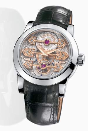 為了與象徵製錶工藝輝煌歷史的四大機芯展輝映,GP芝柏表廠本次可謂精銳盡出,特別是錶迷夢寐以求,難得一見的陀飛輪錶款,都史無前例地齊聚一堂,除了只展不售,價值逾三千萬元的1893年GP芝柏三金橋玫瑰金懷錶之外,更有獲得專利尊榮的「GP芝柏三金橋自動陀飛輪腕錶」、全球僅1只、編號1號、身價近千萬的「GP三金橋陀飛輪自動鑽飾男錶」、「Vintage1945三金橋自動陀飛輪腕錶」、「GP芝柏ww.tc世界時區三金橋陀飛輪腕錶」以及「GP芝柏總裁一號三金橋陀飛輪腕錶」等三金橋陀飛輪錶款。