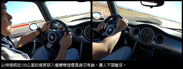 跑車特質完備MINI Cooper S JCW GP絕對不是你想像的小車,開起來類似野獸張牙舞爪般的狂妄,衝過彎道時的沈穩特性驅策你加深油門,隨著速度逐漸加快,每個彎GP都傳達著一項訊息:你!還可以更快一點,我想這是GP更勝MINI Cooper S之處。筆者很訝異這輛小車蘊含如此豐富的能量,明明帳面數據並非雄渾誇張,但跑起來就是有那股源源不絕的速度感。直接的轉向、強大的扭力和紮實的底盤,隨傳隨到的制動力都不像是一輛小車會有的,但卻在GP身上發覺。 三四檔遊走彎道 GP爆發的力道令人印象深刻,靠著增壓系統谷催引擎,從低轉速一路延伸至中段。扭力稱得上是隨傳隨到,1000轉起步從大腳油門起推力正式開啟,大部分彎道只需遊走於三、四檔即可應付,而限滑差速器與DSC(Dynamic Stability Control)系統,總能在駕駛者需要時介入,讓車身仍可維持高度穩定。 遲到的心動 心動嗎?205/40 R18的輪胎尺寸,瞬間油門讓輪胎空轉摩擦地表,精準直接的轉向和加速,各種能耐告訴著駕駛者,多砸2,000美金擁抱是值得的,不過別怪筆者提醒,這批限量已銷售一空,如今GP真正身價早超過車迷想像,所以即使你現在心動也太遲了,它銷售一空的效率比錶速還快。