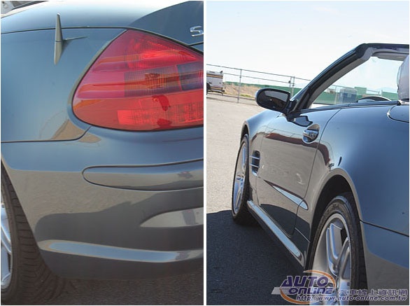 公路表現悠遊自在![]() SL原廠代號R230,雖說SL是Sporty(運動化)和Light(輕量化)兩英文字母的縮寫,但是在外觀上SL500較偏向於一輛大型敞篷跑車…或雙門跑車,很難想像這輛大車的後座,窄小到連孩童搭乘都有困難。全車的風阻係數值0.32,雖龐大但低、矮、銳利的線條仍具備跑車架勢。在道路試駕裡,SL500走過高速公路、二線市區道路、窄巷社區等,靈活刁鑽無庸置疑,前方視野開闊在死角掌握部分,這輛車算是相當成功,完全不會有綁手綁腳的束覆感,加上渾厚扭力伺候,甩出車陣油門一補,其他車瞬間消失於後照鏡,這種暢快筆墨難以形容,無怪乎在洛杉磯這種塞車環境,看著每位SL駕駛者在車內,都是那麼悠哉。
