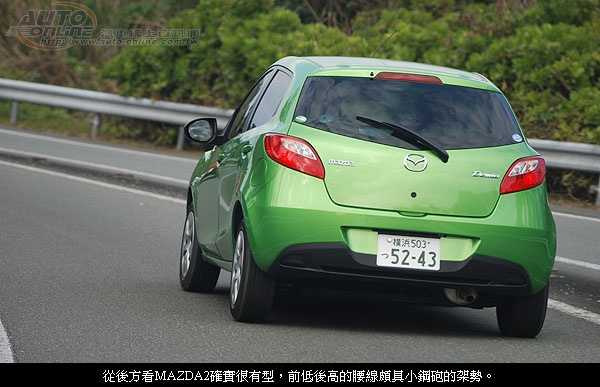 動力尚稱足夠操控表現優異 在山道路段的行駛十分輕鬆,雖因跟車行駛,沒有機會挑戰過彎的極限,但操控靈活,轉向中性,側傾幅度還可接受,懸吊系統抑制路面碎震的效果也不差,可謂Q中帶軟,操控仍具相當本質。EPAS電子動力輔助系統使車輛靜止時方向盤非常輕手,中高速過彎時變得比較有手感,儘管轉速拉高時引擎的怒吼聲浪明顯,但即使是1.3升車款也能達到160km/h的時速,動力表現是相當合格的。 4.9米的迴轉半徑在都會區行駛時更是輕鬆自如,整體而言,MAZDA2是部女孩子也能輕鬆駕駛的小車,對於喜愛操控的年輕人,1.5 Sport版的表現自是可圈可點。更詳細的試車體驗,請待五月份進口之後,有更多時間測試再進行詳細分析,本文僅為初體驗,接續有MAZDA2計畫經理的訪談,可讓大家更了解這部車的設計理念。