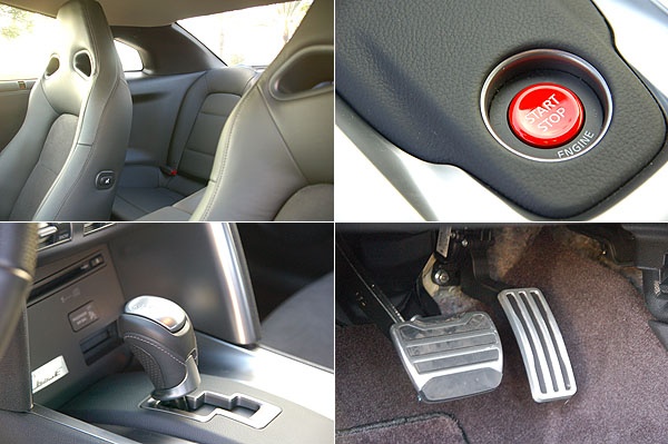 照理說這GT-R試駕報告應該按正統格式來走,但是在實際邂逅後,筆者迫不亟待地想以粗暴、魔王、恐怖等字眼來形容,那種加速的快感和犀利,早就跳脫傳統日式跑車的格局,似乎在自主馬力上限解除後,NISSAN豁然開朗的昭告天下:「我們也有能力製作超跑。」從車內陳列的儀錶、變速系統,到車輛動態的回饋反映,完全不是刻板印象中的日本車,那種境界遠遠超過筆者所想像。 而變速箱的反應快捷,幾乎比擬電玩遊戲那樣「不真實」,這套新變速系統讓不會開手排的族群,也可輕鬆駕馭超跑。R35摒除傳統手排操作模式,換用編號GR6的雙離合器手排;透過電腦接管換檔流程,快速的雙離合器展現比人工更迅速的效率,輕輕一撥方向盤後的蝴蝶瓣,引擎聲浪立刻從低沈轉高亢,雙離合器銜接的時機正確,讓動力傳達更流暢,但也有點不真實!我開的是手排車嗎?
