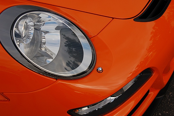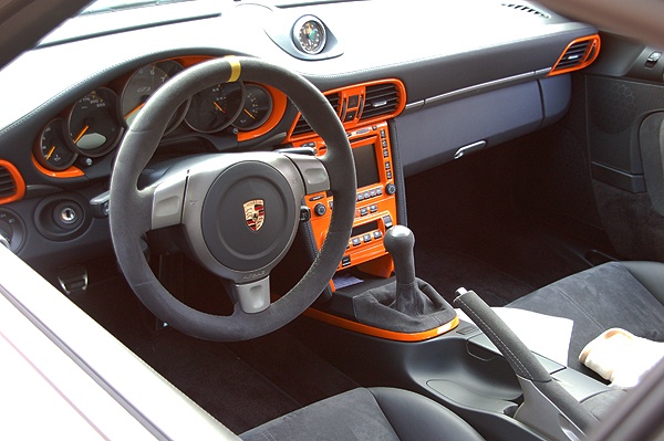 雖說是鐵血超跑,但這輛車於乘坐感卻是不虧待人。坐進以橙色為主題的座艙內,PORSCHE比照賽車模式,將Alcantara麂皮方向盤上12點鐘方向標示黃圈,讓人還沒啟動引擎就有莫名興奮,紮實緊緻的座椅將人牢牢扣住,這輛試駕車沒有六點式安全帶、電瓶斷電開關與滅火器等,但其營造的氣氛卻已夠性能化,質感更是沒得挑剔。