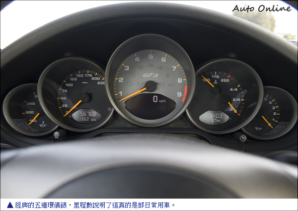 然而這樣一部車若是出現在台灣,想必台灣的車主會將這部車“惜命命”,畢竟除了要價不斐之外,高昂的保養費用和零件料材或許都會讓這部GT3在台灣成為名符其實的車庫車。不過當場景轉移到美國,這部白色GT3的車主可是將這樣一部賽道機器當作是日常座駕。看一看總里程表,已然是有五萬六千多英里,換算成公里都已快突破九萬大關之譜!