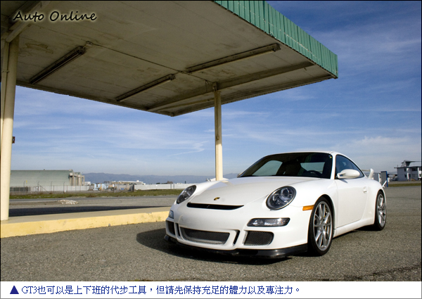 依現今的造車工藝,駕馭一部跑車並不難。但PORSCHE GT3絕對不是一般的跑車,這是一部純種的賽道機器,請拿出您九成九的駕馭功力來對待這部車,並且用上十足的專注力,除此之外還要再加上過人的錢財,就可把這部熱血公路賽車當成您的日常代步工具。