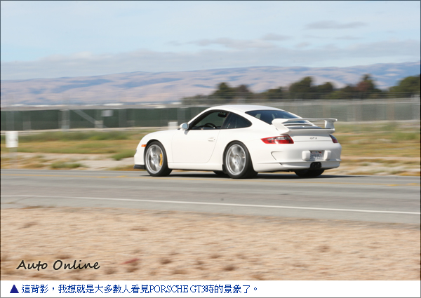 雖然只是短短的試駕過程,卻已經讓人難以忘懷這難得的體驗,更讓筆者佩服的是Timothy Collins先生過人的精力,已經70歲的他,本身還是位業餘賽車手,目前為SCCA(Sport Car Club of America)的會員,這部PORSCHE GT3正是他每日上下班的交通工具,並且還大方出借予筆者試駕。在Tim的觀念當中,車就是要開,因此也不難想見 Tim將這部GT3開上賽道的英姿。