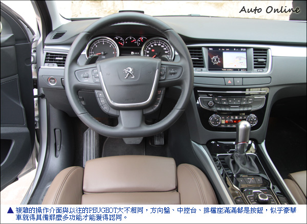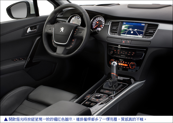 人因工程設計的駕駛艙將駕駛人所需的界面資訊安置在就手的位置,各項操作都十分直覺,方向盤上也提供了多項控制按鈕,此外也導入了EPB電子駐車煞車以及Keyless系統,輕觸門把感應區便可開啟與鎖上車門,按下Start鈕便可啓動引擎。這些高級車的必備條件,在508身上一應俱全。整體而言,遮住廠徽的話,也許你會以為這是部德國高級車!