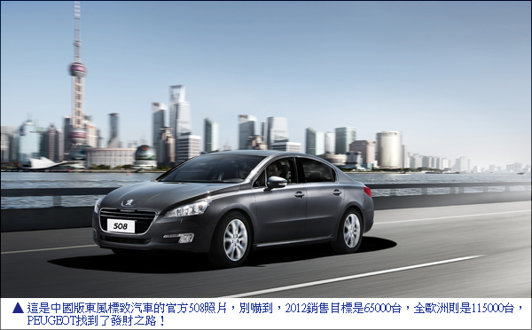 法國雄獅PEUGEOT向來給人動感創意造型與優異操控表現的印象,遠從20年前的205、405、505的時代起,PEUGEOT的操控體質便受到車迷青睞。106、206、306 、406的流暢造型吸引了年輕新貴的目光,接著107、207、307、407、607更奠定了PEUGEOT品牌強韌的競爭力。如今尾數8的世代更繁衍了3008、5008等跨界新產品,而408這個基於中國大陸快速成長的市場而量身定製的車型,則指引了一條發財路,與中國東風集團合作的東風標致汽車成功地打響PEUGEOT在中國的名號,開拓了歐洲以外的強大市場商機。 看準中大型房車(M2, D-Segment)在中國市場的快速成長, 同時更精進歐洲市場的競爭力,PEUGEOT決定讓塵封已久的5字頭車系復活,推出了508車款,定位為接替407(與607)的全新中大型房車,於2011年初於歐陸發表上市,五月份上海車展亮相,年底可望引進台灣市場。