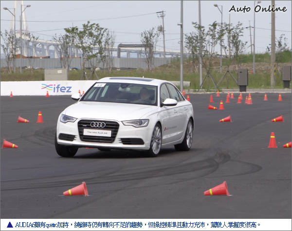 ![]() ▲這一區的繞錐場地讓大家比較3.0TDI quattro與3.0TFSI quattro的差異。個人還是比較喜歡汽油款的300hp與6400rpm紅線轉速。機械增壓引擎的A6 TFSI高達300hp馬力與44.9kgm大扭力的驅駛下,起步的狂暴魄力十足,加上quattro四輪驅動系統的加持,車子彷彿出弦飛箭,電子輔助方向盤與引擎、S tronic七速雙離合器變速箱都統整在comfort、auto、dynamic以及個人化individual四個模式內,甚至在individual模式內可細部調整方向盤與引擎輸出的搭配模式,可輕易地透過大尺寸的螢幕與MMI控制按鈕來設定,而實際駕駛起來也確實有很大的差異。