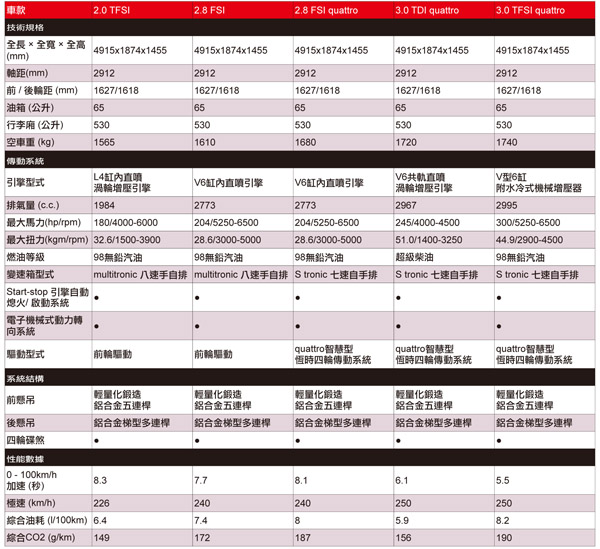 ![]() ▲拜長達2915mm的軸距所賜,前後座的空間都非常充裕,後座也有獨立空調與電源孔。截稿前筆者收到通知,引進台灣的AUDI A6將有2.0TFSI、2.8FSI、2.8FSI quattro、3.0TFSI quattro、3.0TDI quattro等車款,價格從240萬到360萬之間,主力車款將是2.8FSI quattro。而銀兩夠多者尚有一大串高檔好物可供選配,如全LED極光頭燈組、主動轉向式頭燈、雙前座座椅通風功能、S Line跑車懸吊、HUD抬頭顯示器、quattro附加跑車式限滑差速器等等。欲知更詳細的車款資料,敬請鎖定九月八日發表會之後汽車線上資訊網www.auto-online.com.tw的第一時間報導。