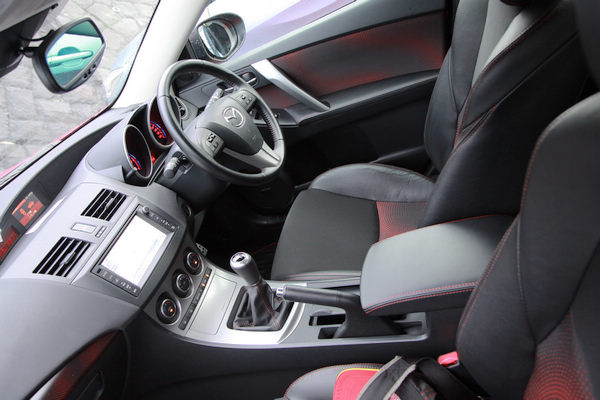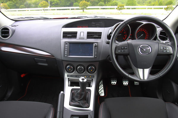 ![]() 從帳面數據上看來,MAZDASPEED Axela搭載的是和師兄MAZDASPEED Atenza相同的2.3升DISI Turbo引擎,最大馬力264ps/5500rpm,最大扭力38.7kgm/3000rpm,變速系統搭配的是六速手排,而驅動方式卻是前輪驅動,而不是MAZDASPEED Atenza的AWD。