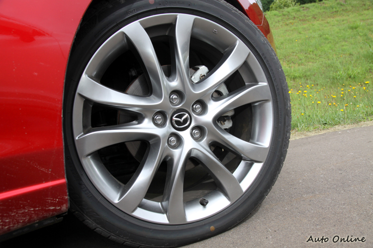 ![]() ▲在外型上,延續2011年在日本東京車展中發表的概念車「Mazda TAKERI」的精隨,並且導入KODO魂動-SOUL of MOTION家族特色。Mazda家族風格導入在外型上,延續2011年在日本東京車展中發表的概念車「Mazda TAKERI」的精隨,並且導入KODO魂動-SOUL of MOTION家族特色,運用車身的細微線條營造出孔武有力肌肉線條,以獵豹在蓄勢待發時散發出的神韻。沒錯!這樣的設計理念與CX-5有相同的概念。![]() ▲看到全新Mazda6車頭水箱護罩與頭燈造型,顯現家族式臉譜「魂動之翼」,看的出Mazda慢慢改走家族特徵造型。![]() ▲設計師為我們解說全新Mazda6車側折線的涵義,銳利的腰線確實增添不少美感。![]() ▲這次Mazda很有誠意,原廠就搭配225/45R19的超大尺寸鋁圈配置。![]() ▲車尾燈具利用燈殼內的造型修飾,來提升車尾的科技與未來感。