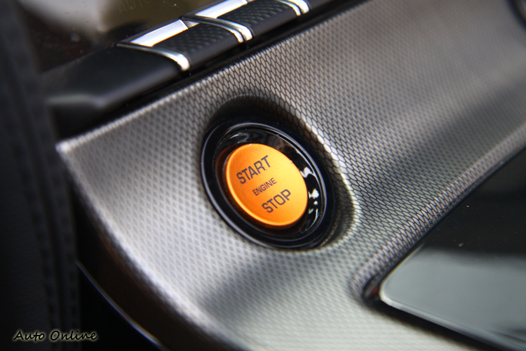 ▲啟動鈕特別採用鮮明的反光功能金屬橙色塗裝,一眼就能看見。