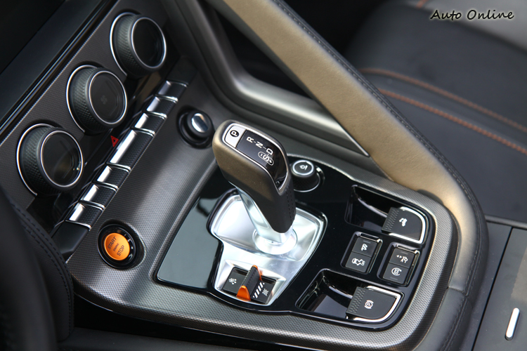 引擎啟動鈕、換檔撥片與動態模式控制按鈕這些都採用反光功能金屬橙色塗裝,所以雖然有些按鈕位置安排有點奇怪,倒也一眼就能找到。車內比較礙眼的除了那根8AT排檔桿以外,就是電子手煞車了,搞了這麼多向經典致敬的玩意,卻把最基本的自主性都扼殺了,真是難以理解。