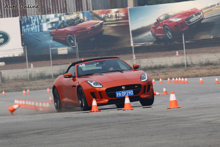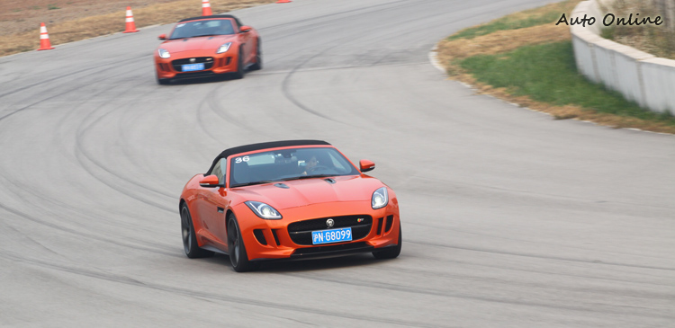 試駕活動最高潮就是進入北京金港賽道進行體驗,不過別以為會有血脈賁張的場面,因為此行跟著教練的前導車繞兩圈,沒有太多機會試出F-Type的過彎極限,真的只是“體驗”而已。短短兩圈的繞圈中,印象比較深刻的地方是通過一處左右連續高速彎,3.0 SC快速重心轉移時的穩定性,聽話的程度真是讓人大呼過癮!由於上午已經先以Range Rover Sport探路過,知道幾處可以全油門通過的彎,幾個彎下來也已經察覺到它的指向性真的非常精準,除非路線與車速真的太離譜,車頭出現轉向不足的現象微乎其微。