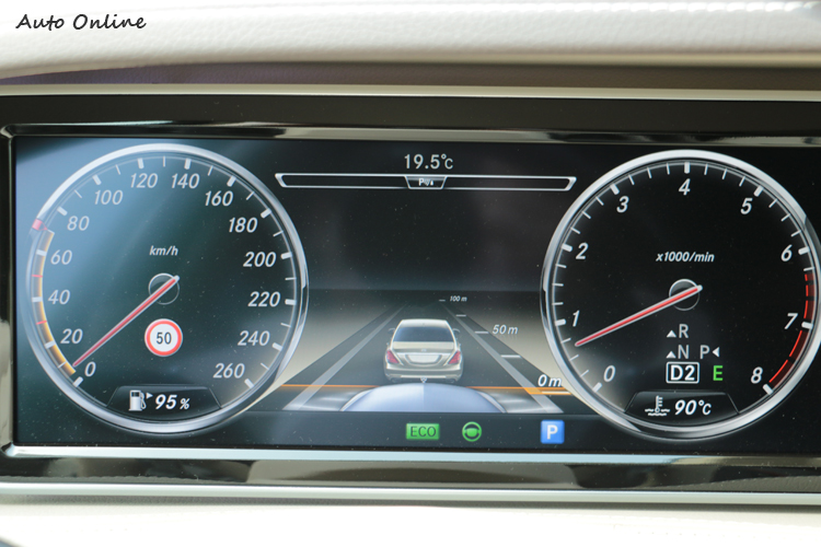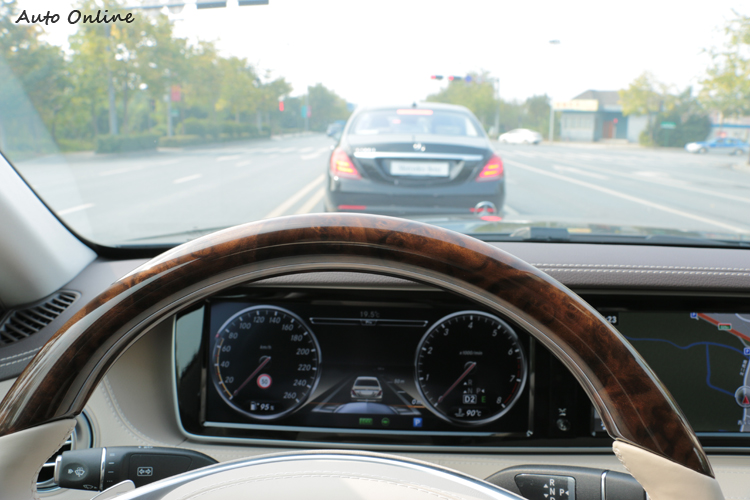 最先進主動安全科技體驗![]() ▲DISTRONIC PLUS系統啟動後會在主螢幕中看到與前車的距離資訊,左邊時速表上顯示的50,是系統自動辨識交通號誌,顯示此路段的速限。DISTRONIC PLUS與PRE-SAFE PLUS這兩套系統已經行之有年,但在先前改款的E-Class與這台全新S-Class身上,已經進化成當今最先進的主動安全輔助系統,包括了裝置在車頭的中程與長程雷達,前擋風玻璃上緣的一對3D攝影機與紅外線攝影機,以及車身四周的超音波感應器與攝像頭等等,組合成有視覺(3D影像分析方位距離與形體)、聽覺(近距離超音波)與虛擬觸覺(雷達波距離探測)的嚴密監控並協助避免事故發生的全方位主動安全系統。 ![]() ▲前檔風玻璃上端的3D立體攝影機與諸多監控機構,是PRE-SAFE系統的重要視覺系統。![]() ▲隱藏於水箱罩內的雷達是DISTRONIC PLUS系統的主要裝置,台灣進口的版本應該看不到。![]() ▲跟隨前車的控制法就如使用定速巡航撥桿,可以輕鬆順暢地跟隨前車的速度前進。但萬一靜止後仍須駕駛者踩油門才能再度前進。![]() ▲12.3吋的螢幕顯示導航地圖非常清晰順暢,顯示此系統CPU應該有很不錯的效能。這系統非常方便,即使在高架橋很塞車的情況,只要不嚴重到靜止,可以很舒服地讓系統幫你自動控制車速與安全距離,在台灣的高速公路或高架橋也很適用,走走停停時還有主動輔助煞車,快撞上前車時會自動幫你增加煞車力。有次我刻意晚煞車,前方的S-Class雙邊方向燈竟然快速閃爍警告,我自覺駕駛技能超過一般水平,結果當然是安全煞停,亦倚賴PRE-SAFE BRAKE的輔助,總之主動安全系統真的能幫你把守一些注意力不夠集中時的危險。