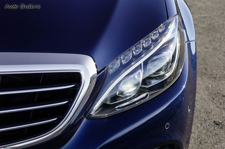 ▲主動式LED頭燈總成與E、S-Class一樣,集高科技與設計感於一體。