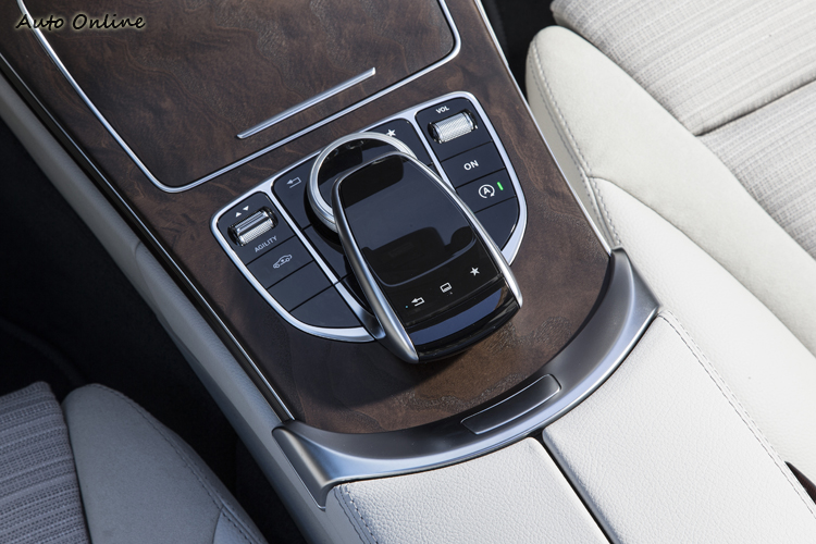 ▲高科技功能繁多,但都集中在方向盤與扶手前的控制鈕,中控台的按鈕集中而清楚,釋放出實用的置物空間。賓士不只是豪華,也相當注重實用性。