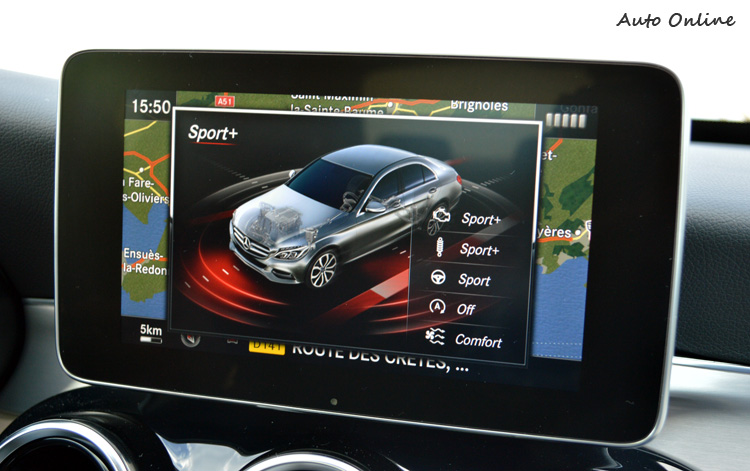 筆者試駕時小幸運地抽到搭載AIRMATIC系統的C200,奔馳在城外的山區道路,只有兩種感覺:第一,馬賽附近的山區道路品質實在太讚了!不但路面平整紮實,彎角會做傾斜度,甚至小半徑的彎道和山壁之間還做了沙地緩衝區@_@。第二,C-Class的操控性可以跟上BMW 3系列了!在原本擅長的穩定性中,C-Class的指向性更靈活了(不要問AUDI如何,前驅底不要拿來比)。