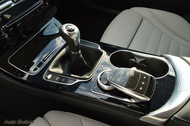 ▲台灣見不到的手排款配置,佔據了置物空間的排擋桿,但也貼心地將觸控板挪向駕駛座,騰出杯架空間。