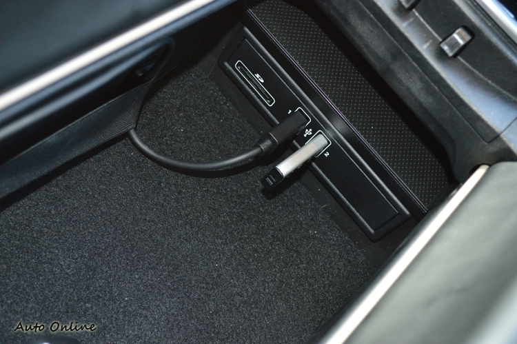 ▲中央扶手內的空間提供兩組USB連線充電(超級重要!)與一個SD卡的資料讀取。