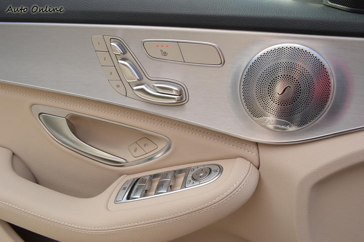 ▲操控鍵都用上金屬光澤,刻意和暖系列的內裝成對比。音響揚聲器全面採用與S-Class同級的Burmester品牌,更是豪華品質的保證。