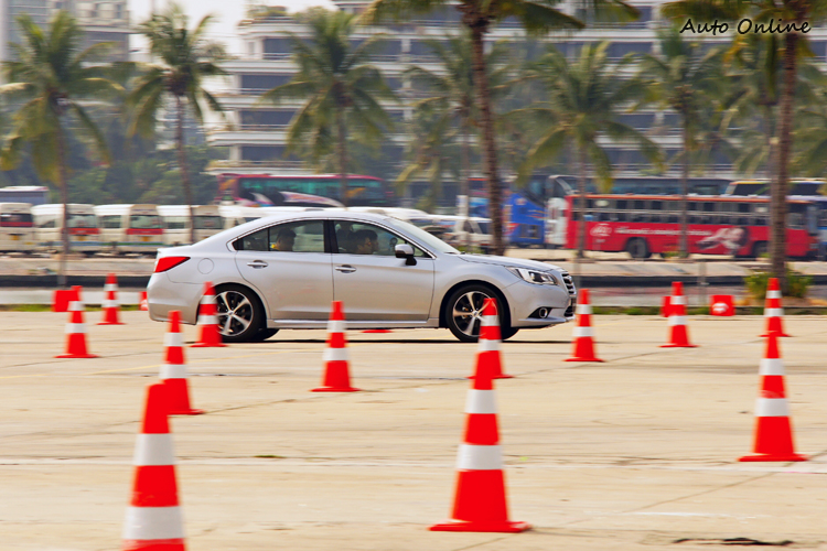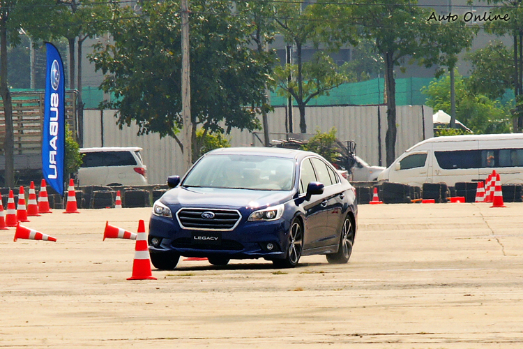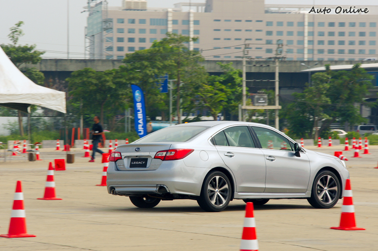 不顯顢頇的靈活操控感在這次泰國試駕活動中,SUBARU為Legacy所規劃的試駕場地主要分為三個關卡項目,一開始從最單純的直線加速開始,讓媒體朋友們感覺一下這具2.5升自然進氣引擎的表現,不過現場教練人員的要求是加速到70km/h就得減速,所以只能算是「淺嚐」一下。這具2.5L四缸引擎在新Legacy上已經算勝任,油門反應也算明快,不過加速感覺還是「順暢」多於讓人興奮的「衝勁」,也難怪國內不少車迷會對於2.0L DIT渦輪引擎有更多的期待,不過在車廠對市場的整體考量之下,2.5L自然進氣版本入台已是定局。