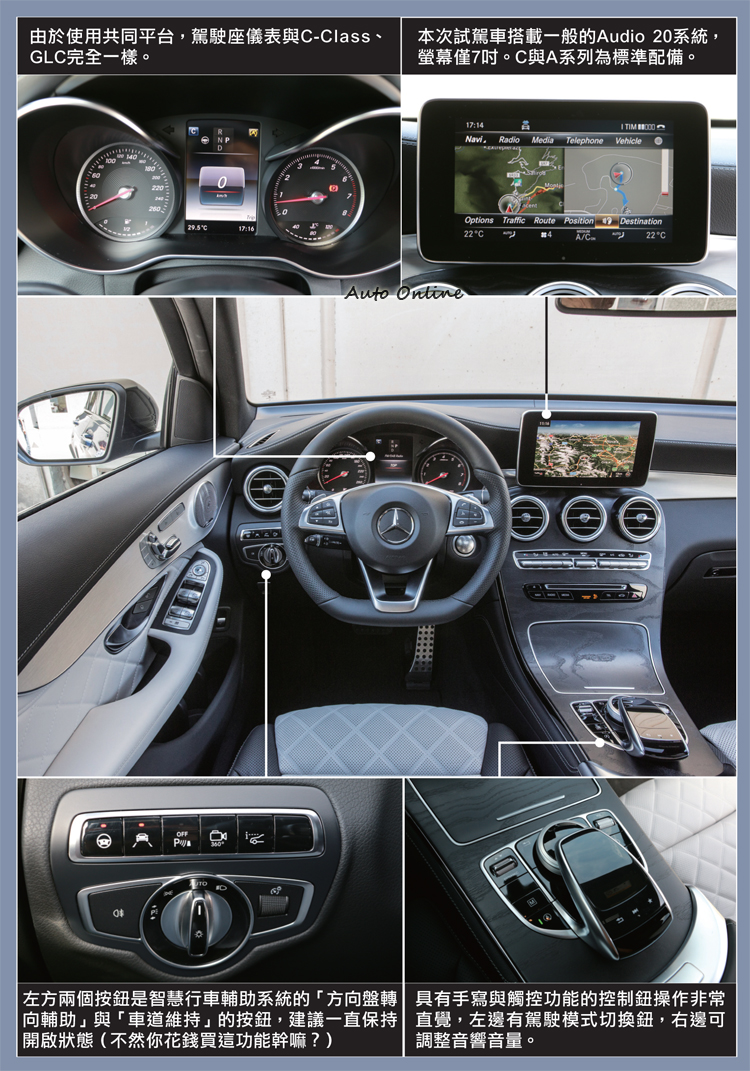 比GLC更高一等的標配![]() 內裝方面,GLC Coupe和C-Class、GLC的操控介面一模一樣,駕駛座雙圓儀表中多功能顯示幕,可由方向盤上左側的按鈕操作,顯示各式行車資訊。 ![]() ▲後座出風口可獨立控制風量與溫度,為第三區恆溫空調。![]() ▲電動座椅可延伸坐墊長度,溫度與風量可單獨調整,賓士御用Burmester高級音響系統效果非常棒!![]() ▲GLC Coupe標配就是進階的ARTICO皮椅,試駕車配備了更高等的Napa黑白雙色designo真皮座椅,質感與支撐性都非常棒!![]() ▲拜2873mm的長軸距,後座腿部空間相當充裕,以筆者的177cm身高仍有約一個拳頭的頭部空間。跑車化懸吊系統是GLC Coupe的標準配備,路感明顯比GLC硬朗。還可升級自動電子阻尼控制的Dynamic Body Control,甚至更高等級的氣壓控制懸吊Air Body Control。當然,選配起來得花不少銀兩。位置就手的Dynamic Select動態模式鈕,可在Eco、Comfort、Sport、Sport+以及Individual五種模式間選擇,包含方向盤的輔助、引擎出力、變速箱檔位、懸吊高度軟硬等等,都會依照不同模式而調整,差異非常明顯。不過即使在Eco模式下,仍有基本跑車懸吊的硬朗感,若切換到Sport+模式,則可釋放本車的最高性能。