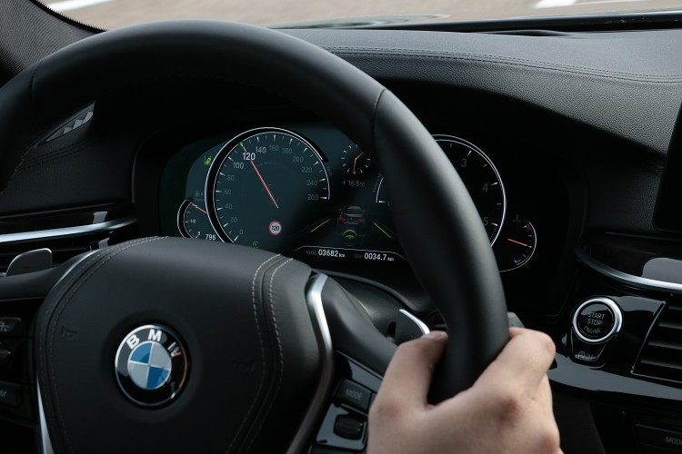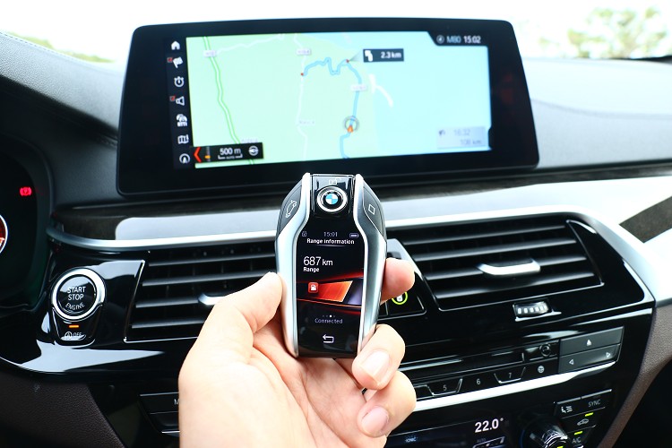 自動巡航搭配車道導引 有未來車的雛型![]() ▲第三代抬頭顯示器,面積比第二代增加70%。拿著可檢控車輛行駛里程、保養資訊及預先設定送風時間等功能的智慧型螢幕鑰匙,按下啟動按鈕,正式開始里斯本的試駕行程。離開機場首先安排的路線是高速公路,在這要我們測試、體驗ACC自動巡航系統以及轉向、車道引導輔助系統。這套在7系列上就有的系統,到了5系列後系統更強大,透過保桿下方的雷達系統與擋風玻璃上的鏡頭,啟動定速後就能自動與前車保持一定距離行駛(時速在210km/h以下都能啟動),前車慢會自動減速,最低速度可到完全禁止,停止後駕駛不需踩煞車踏板,三十秒內前車移動,系統會自動跟上達到預先設定的速度。 ![]() ▲自動巡航系統啟動下,當電腦偵測到車道線則會開啟車道偏移系統,當駕駛偏離車道線會主動修正回到正確路線。與前車的間距可從方向盤上調整。![]() ▲可檢控車輛行駛里程、保養資訊及預先設定送風時間等功能的智慧型螢幕鑰匙,與7系列相同。