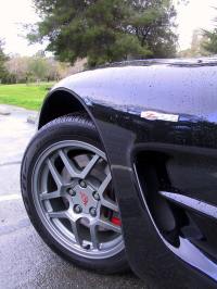 性能巨獸虎虎生風![]() 因緣際會下,筆者得以試駕這輛難得一見的美國精神號,儘管車款為2001年車型,與市面上所謂2003年款式略有出入,但同樣是Z06車系,除了馬力推進至405匹以外,在整體表現上倒無明顯差異,新一代車型中,一般版本提供敞蓬和雙門車款但是Z06由於結構強化需要,僅有唯一雙門車型提供。延續傳統跑車必備的前置引擎、後輪驅動,Z06動力單元搭載的是5.7升V型八缸,這具代號LS6的OHV引擎,最大馬力輸出達385hp/6000rpm、扭力也是385lb-ft(約52.7kgm)/4800rpm。搭載六速手排變速箱,輪胎為295/35ZR18的Goodyear Eagle F1高性能胎。根據國外媒體測試數據,Z06從起步加速到60mph僅需4.6秒,四分之一哩加速為12.8秒,通過時速為113.5mph,最高極速達171mph,這種表現定義為「超跑」一點都不為過。同時,破天荒地,Z06使用鈦合金排氣系統,目的在降低背壓和減重,且GM原廠在Z06身上裝置了「active、competitive、off」三模式主動式操控系統,與大型化前防傾桿、強化後彈簧和FE4懸吊系統架構起Corvette引以為傲的運動性能。