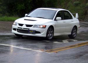相信令不少EVO迷在意的,是美規版本與純日規版上有所差異,美規輸出版上少了著名的ACD和AYC系統,一樣是四輪驅動裝置,但少了這兩項三菱當家技術,操控上是否就大打折扣!?筆者接觸EVO機會並不多,說要完全體驗AYC本事恐怕太過沈重,倒真的無法找出答案。當天試駕一陣雷陣雨後,剛好進入難得的山路,在濕滑路面上體驗四輪特性一番。由於選定的山區路段狹窄,因此實際EVO在此發揮能力不大,相較之下當日隨行的MAZDA Miata卻發揮了短小精幹特性,在蜿蜒路段黏著EVO尾巴不放,並以驚人的速度征服彎道。不過,EVO並非省油的燈!銳利的轉向使這輛乍看頗為龐大的車身,可以在彎道搾出更高極限,重點是其極限可使駕駛者信心倍增。
