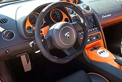 炫麗的橙色珍珠烤漆(Arancio Borealis)吸引媒體圍堵,還沒下場Gallardo周邊便已擠得水洩不通,超級跑車人人都愛!能夠一親芳澤更是車迷宿願。一番等候輪到我上場,跨入座艙內Gallardo因應潮流提供許多人性化配備,高級音響系統、恆溫空調、電動可折照後鏡等,在座椅和真皮包覆間加入的縫線手工細緻,種種特徵Gallardo將義大利強悍與德國高級感兼容並蓄,視覺感、觸感甚至真皮包覆的貴氣和驕傲,Gallardo未演先轟動,包裝無可挑剔。