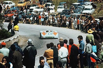 ![]() 1969年保時捷因應世界性比賽規則的改變,派出了908/02 Spyder六部參賽的908/02裡,其中四部拿下了前四名的位置,Gerhard Mitter和Udo Schütz拿下了全勝,並以6小時7分45秒創下了新的賽事紀錄。1970年保時捷派出了908/03 Spyder參加Targa Florio大賽,這場比賽也是由保時捷奪下前兩名的勝利(Jo Siffert/Brain Redman,Pedro Rodriguez/Leo Kinnunen),Kinnunen以平均時速128.57公里創下了賽道紀錄;1973年,Gijs van Lennap和Herbert MüllerCarrera 駕駛保時捷911 RSR在長途比賽的歷史中寫下新的一頁,直到1973年的最後一場世界大賽,保時捷以11次全勝的紀錄成為Targa Florio大賽歷史中最成功的汽車品牌。這項揚名歐洲的賽事,也在1973這一年劃下了休止符。隨著賽車速度愈來愈快,加上輕量化敞篷車幾乎沒有任何安全防護,以致這項長途越野賽事的死傷率屢創新高,終於在1973年賽後終止了敞篷車級距賽事,至今仍未曾再舉辦過傳奇的Targa Florio賽事。